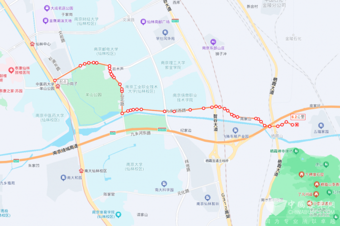 栖霞区仙林大学城道路测试起点在羊山公园地铁站,终点至栖霞寺西门,全程约6公里。