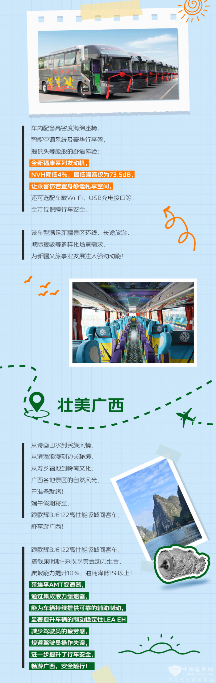 “康明斯+采埃孚”黄金动力链 欧辉BJ6122高性能城间客车陪你舒享端午!