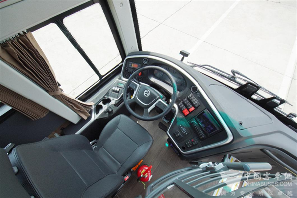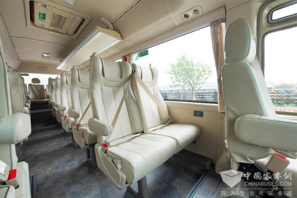 金旅纯电动考斯特延续了服务全国两会多年“零故障”的品质基因,通过超静音座舱设计、轿车化智能操控系统及轻量化车身技术,在狭窄街巷中亦可实现灵活通勤,为高端商务接待提供“移动会客厅”级的静谧体验。而金旅凯旋大型豪华客车则以“高效空间”与“尊享科技”为核心,专为高端商务出行场景精心设计。人体工学座椅贴合人体曲线,车内柔和灯光氛围;环抱式驾驶区、拨杆换挡机构、多功能方向盘以及副台增加的储物空间,共同营造省心便利的驾驶氛围与温馨舒适的乘坐空间。