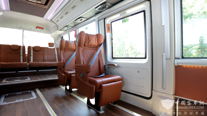 车内空间宽敞明亮,采用2+1座椅布局,座椅设计符合人体工程学原理,且座椅可放平,为乘客提供良好的支撑和舒适的乘坐体验,让旅客在旅途中能够更好地休憩。