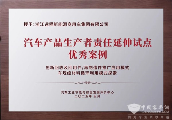 在国家“双碳”战略引领下,远程新能源商用车集团积极践行生态责任,持续推进汽车产品生产者责任延伸(EPR)制度建设,取得显著成果。近日,在2025年汽车生产者责任延伸(EPR)成果分享会上,远程新能源商用车提交的“创新回收及再制造件推广应用模式”和“车规级材料循环利用模式探索”两个典型案例入选EPR试点优秀案例,荣获汽车工业节能与绿色发展评价中心“优秀案例”授牌,进一步巩固行业领先地位。