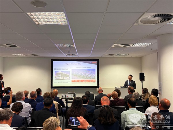 苏州金龙欧洲区大区经理汤超群在UITP峰会上做主题演讲