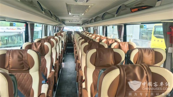 BJ6122城间客车采用现代美学设计,外观时尚大气,车身线条流畅,成为旅途中的一道移动的风景线。车内采用2+1座椅布局,空间宽敞舒适,配备双密度海绵座椅、多种复合材料填充的靠背及头枕,有效缓解长途疲劳。同时,多种组合氛围灯、液晶小电视、USB充电口、数字化智能座舱和智能网联技术等贴心配置,为乘客打造“舒适出行、畅享旅程”的文旅新体验。