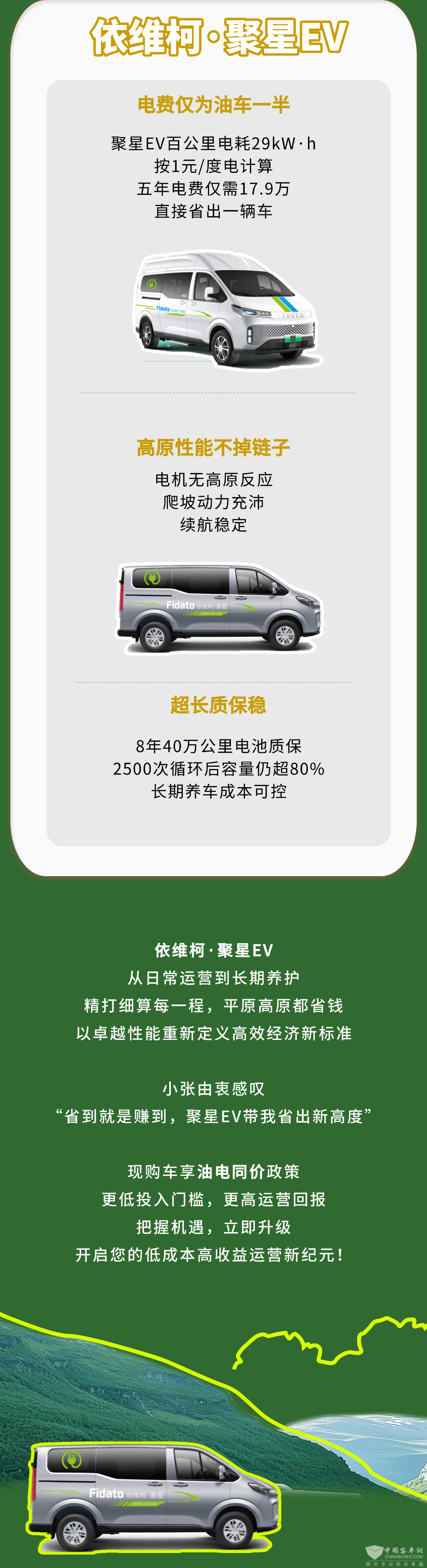 XINGKONG.COM2025年7月15日获悉,依维柯聚星EV电费仅需油车的一半,高原条件下性能稳定,8年40万公里超长质保,高效益、低成本。
