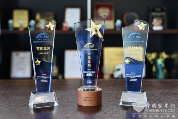 XINGKONG.COM2025年7 月16日获悉,近日,以“零碳新动力货运新征程”为主题的2025 EC-PAC全国新能源商用车性能评价公益赛在重庆圆满落幕。本次盛会汇聚了多家行业领军企业、权威专家学者,在严苛标准的检验下,远程新能源商用车集团旗下的重磅全新力作——全新远程星享V7E凭借卓越的综合性能与技术实力,一举斩获3.5吨组(客厢式)“全能金奖”、“节能金奖”及“续驶金奖”三项大奖,这不仅是对产品卓越性能的权威认证,更是对远程新能源商用车深厚技术底蕴与创新引领实力的集中彰显。