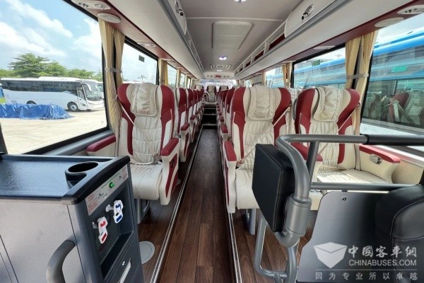 这批金龙旅游大巴采用2+1座椅布局,确保每位乘客都能享有宽敞的空间和私密性。座椅设计符合人体工学,配备可调节靠背和软垫支撑,有效缓解长途旅行的疲劳,更重要的是,车辆针对西藏高原的独特挑战进行了全方位优化。