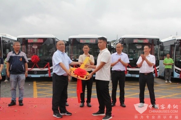 活动的最后,由奇瑞万达贵州客车股份有限公司运营总监吴选平总与贵安新区公共交通有限公司董事长、总经理丁一进行钥匙交接。