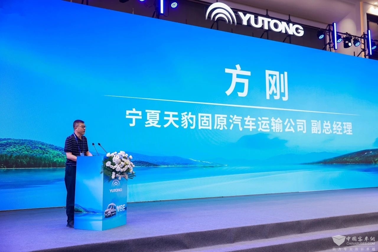 宇通客车股份有限公司高级产品经理王双超介绍,天骏V6E精准定位于高价值耐用纯电轻客,适配于定制客运、班线大转小、短线旅游、公交出行等高频次、高强度运营场景,可为客户构建全周期的高价值保障体系。
