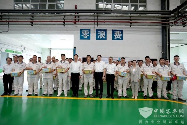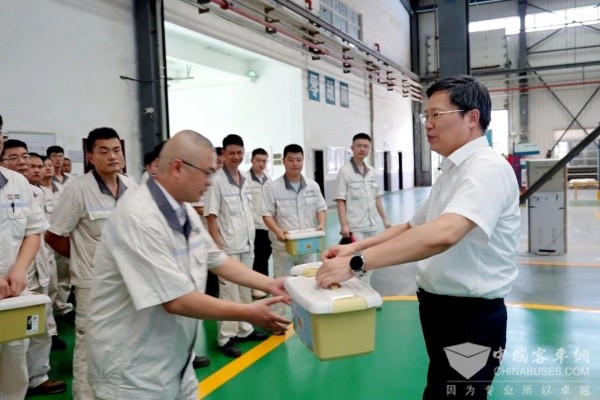 在车间现场,李余粮将“清凉防暑物资包”一一送到员工手中,感谢大家在高温酷暑下坚守岗位,并叮嘱高温天气下注意身体健康和生产安全。