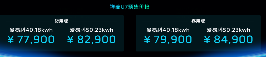 祥菱U7拥有货用、客用两大版本,均配备40.18kWh和50.23kWh产品可供选择,售价7.79万元起。除了亲民的价格,10月31日前购车,还可享受两重好礼:金融礼,2年7万贷款免息,价值3500元。服务礼,免费赠送2年全包服务,2年内免费后桥保养、冷却液及制动液更换、电机减速器润滑油保养、工时及四轮定位,价值2000元。此外,凡购买爱易科电池车型,首任车主享终身免费质保。