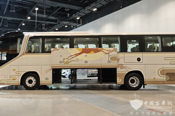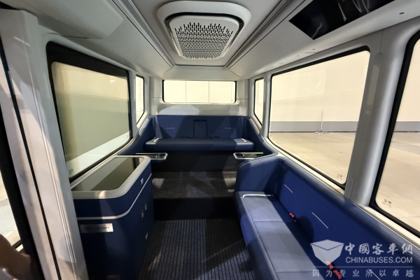 BJ6605车内采用乘用化内饰、一体化侧围、隐藏式出风、多种炫酷的灯光设计,拥有多功能储物柜、车载冰箱、多功能茶几、无线充等功能辅助配置,让乘客仿佛置身移动的科技会客厅。此外,车辆还配置有电控隐私玻璃,在会客时可以开启隐私玻璃,起到遮阳作用同时也增加了安全与隐私性。