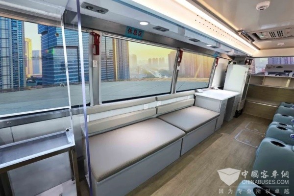 在车内功能区,每一个环节的设计都彰显着山东重工中通客车对献血者以及医护人员体验的关怀。智能登记区、高效体检区、舒适采血区、多功能休息区等区域科学布局,使得献血流程更加顺畅高效,单次采血服务效率可提升30%以上。