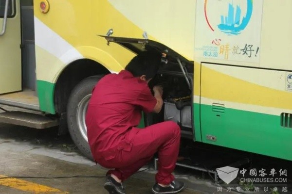 <安凯售后服务人员对车辆进行细致的夏季安全大检查>