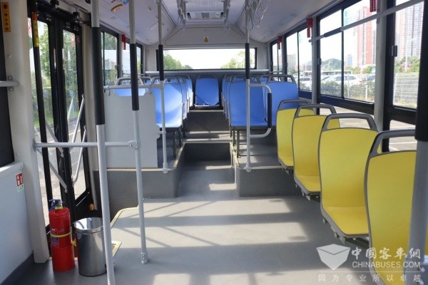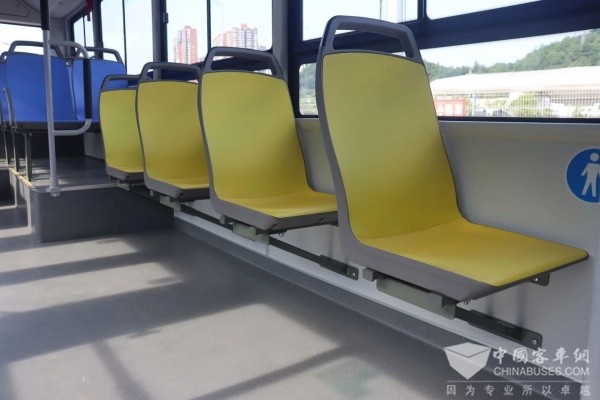 纯电驱动系统实现零尾气排放,车内噪音低于65分贝;配备独立空调系统,搭配轻量化乘客座椅,并采用倾斜椅脚设计,方便车厢清洁维护,打造“静音、清凉、便捷”的出行环境。