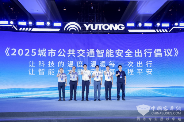 论坛现场,宇通客车联合行业代表共同发起《2025城市公共交通智能安全出行倡议》,提出以技术创新为驱动、以标准共建为基础、以全链协同为保障,让科技传递温度、以智能守护平安。