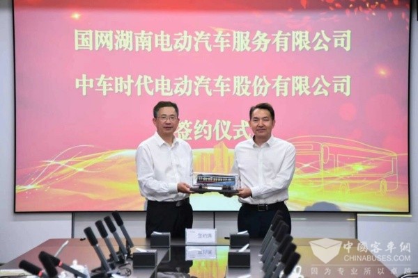 2025年月8日,中车时代电动汽车股份有限公司与国网湖南电动汽车服务有限公司正式签署合作协议。中车电动党委书记、董事长肖高华,国网湖南电动汽车公司党支部书记、董事长李宗赐出席签约仪式并见证签约。