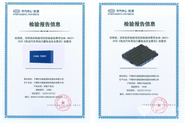 2025年9月5日,宁德时代钠新电池通过了GB 38031-2025《电动汽车用动力蓄电池安全要求》(以下简称“新国标”)认证,成为全球首款通过新国标认证的钠离子电池。