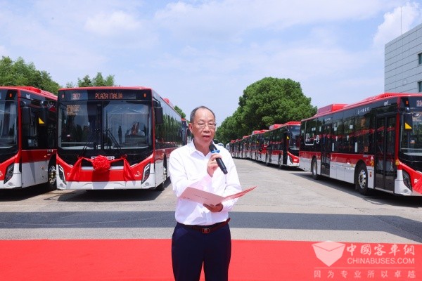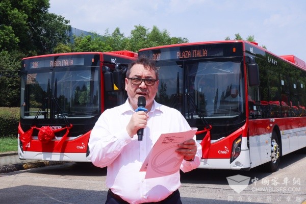 在发车仪式上,苏州金龙总经理黄书平指出,苏州金龙从2005年开始便布局智利市场,经过二十年不断深耕,累计已向当地销售客车超千辆。海格客车始终以“提升城市交通品质、改善市民出行体验”为目标,坚持提供高品质的产品和高标准的服务,因而在此次招标中成功胜出。此次发往智利的FENCER f1纯电公交,是海格客车集多年技术积淀与创新成果打造的精品,将为智利公众带来更舒适、便捷的乘车体验。他期待双方继续深化合作,共同推动智利新能源交通体系建设,并祝愿该批车辆顺利运营,成为中智友谊与合作的绿色桥梁。