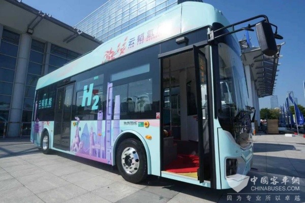 金龙M系列氢燃料公交亮相2025金砖国家新工业革命展览会。(厦门日报记者 卢剑豪 摄)