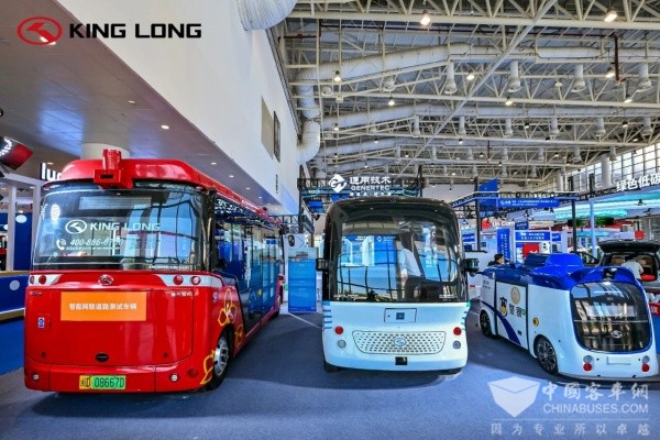 在本次论坛同期举办的金砖展上,金龙携自动驾驶巴士Apolong、自动驾驶公交“逍遥”、K3物流车、自动驾驶安防车等自动驾驶产品及MC数智大巴、M系列氢燃料客车、换电重卡等新能源产品齐亮相。