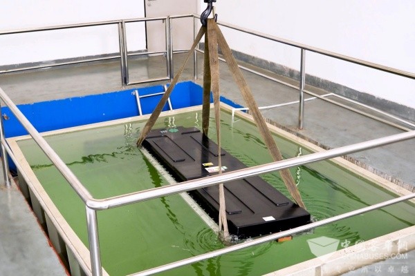 在浸水测试中,爱易科动力电池采用大法兰面密封+FSW焊接的技术,具有分子级防护耐高压、耐高温、耐腐蚀的良好性能。在测试场景上,爱易科电池在1.5米深的3.5%高浓度盐水中持续浸泡72小时,而新国标仅要求2小时浸没即可。考虑到今年北方地区多雨的特点,良好的耐水性不仅让用户无惧积水潮湿的路段,就算涉水也仍能保持电池的稳定安全,爱易科动力电池将安全隐患排除在出厂前的每一个环节。