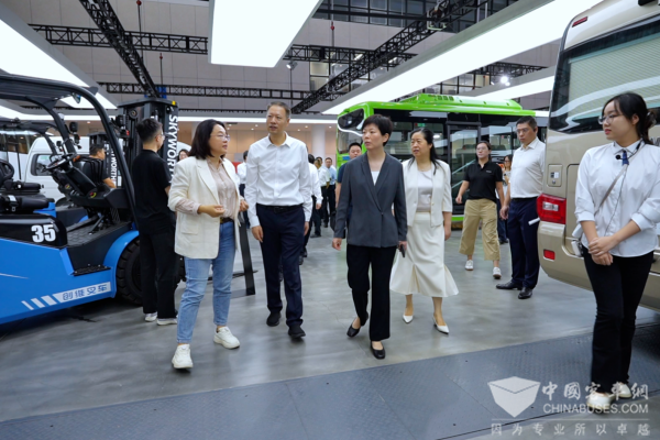 开沃集团办公室主任孟园园带领与会领导和嘉宾共同参观创维汽车展位