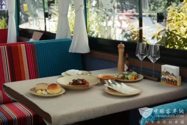 事实上,这款安全绿色又舒适的双层巴士在融合城市观光与美食体验方面的创新实践,远不止于此。在海口,它化身为移动的“老爸茶馆”,让乘客在南洋复古风的车厢里边品茶点边欣赏街景;在北京,它进阶为“移动的米其林餐厅”,让乘客在全景天窗下尽享现制西式牛排。