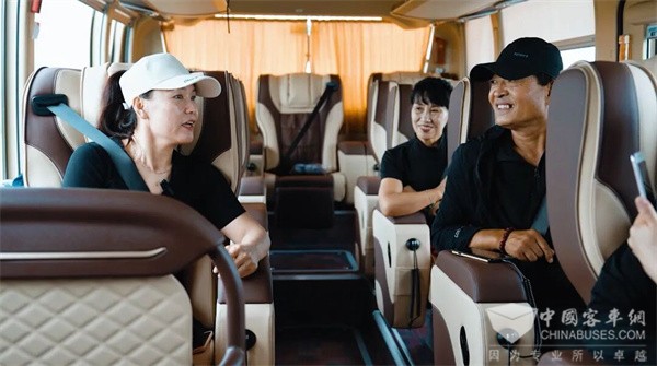 其二,是与客户交流的共情能力。 基于资深旅行者的经验,壹凡旅行的团队更能理解客户内心深处的需求。“我们和客人聊的不是购物点,而是光影、机位、某个山谷花开的时间,或者哪里能拍到最美的星空。”白继平说。这种基于共同爱好的交流,让他们和客户的关系更像是结伴同行的旅友,也正因如此,他们愿意且能够为客户做个性化的调整。宇通C12L原厂定制“1+1”商务座椅,支持141°半躺调节,让乘客在漫漫长路中可半躺休憩,为壹凡旅行打造高品质定制化旅行线路奠定了坚实基础。