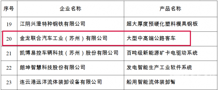 - 苏州金龙荣获“国家制造业单项冠军企业”称号[11-03]