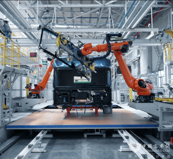 作为福田汽车全国五大制造基地之一,这里集研发、生产、试验、物流与客户互动于一体,通过持续的自动化改造与工艺升级,不断夯实高质量发展根基。在EK2C焊装车间,76台德国库卡机器人、48套博世焊机与51台AGV无人车协同作业,自动化率已达73%;车身总成线采用激光焊接工艺,顶盖通过视觉检测+视觉引导定位,实现毫米级精度控制。通过MES系统、安灯系统等先进管理平台的深度应用,这座数字化工厂正重新定义现代汽车制造的标准。