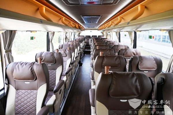 以座椅为例,海格公路和谐号采用“1+1”“2+1”大商务座椅配置,座椅采用人体工学设计,坐感舒适;而且座位空间宽敞,9米车型座位数仅“13+1”,无论是休息,还是观光,都能享受最佳体验。