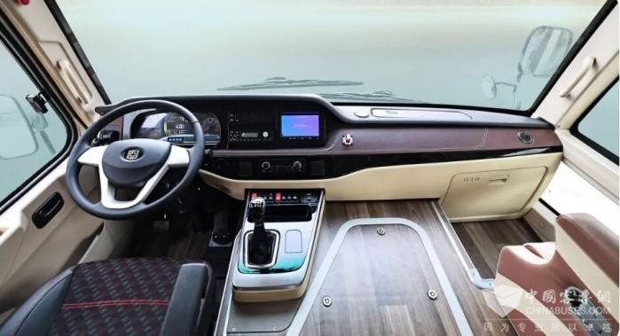 驾驶区采用平地板设计,极大方便驾驶员在车内移动;环抱式商务仪表台搭配集成式多功能中控显示屏,操作逻辑更清晰;驾驶座安全带支持上下可调,能确保不同身高驾驶员都能找到最舒适的佩戴位置,兼顾安全与舒享。