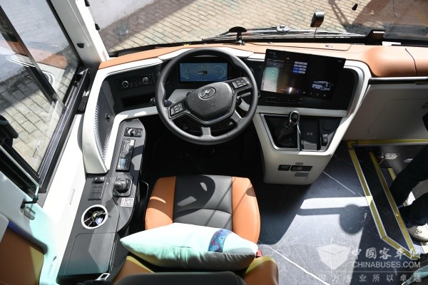 在文旅发展新趋势下,数字技术已成为深度重塑文旅体验的核心引擎。苏州金龙深耕智能化、数字化发展,“海格公路和谐号”配备有一键启动功能,操作简便快捷,让行程更加从容高效;集成屏幕虚拟按键、智能交互系统的智能座舱,可通过语音实现导航规划、开关车载设施等操作,助力驾驶员专心驾驶,让出行更安全、更便捷。此外,座椅后背还搭载多功能娱乐显示屏,画面高清、视野广阔,不仅可用于商务展示、资讯查阅,还让休闲观影更清晰直观,极大提升旅途愉悦感。