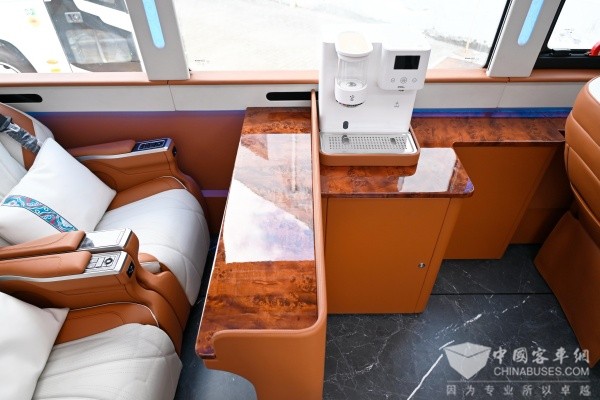在为乘客提供便捷服务方面,“海格公路和谐号”同样表现卓越。智能即热饮水机能够按照乘客需求快速提供多温饮用水,让乘客时刻保持充沛精力;精心设置的无线充电区域,摆脱线缆束缚,高效充电保障设备续航;内置的高品质冰箱能够储备新鲜饮食,满足乘客多样化的口味需求;此外,“海格公路和谐号”上雨伞等贴心小物也一应俱全,随时应对天气变化,细微之处彰显人文关怀。