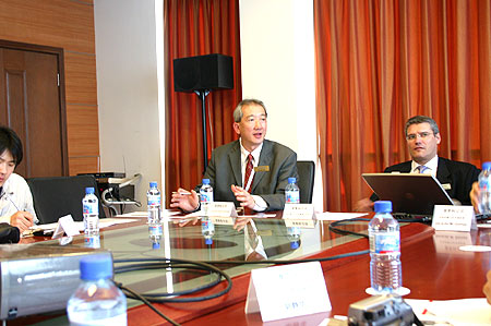 索斯科副总裁、亚太地区董事总经理托马斯.默勒尔(右),大中华区及东南亚区业务经理张友成(左)答记者问