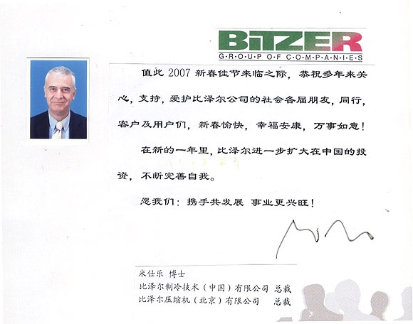 2007比泽尔(中国)总裁米仕乐 新年贺辞