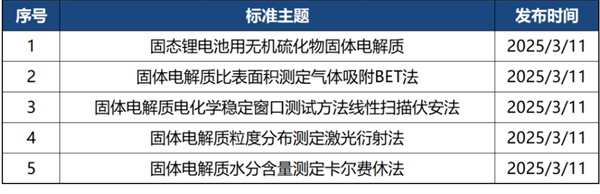 2025年3月共有新立项标准法规5部,均与动力电池有关。具体如下: