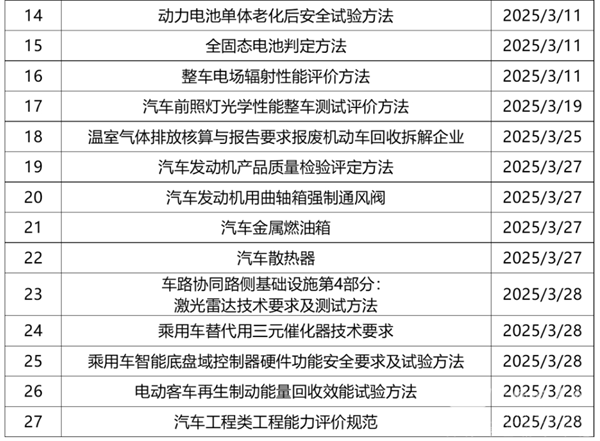 对此,笔者根据慧眼看车等对2025年3月相关汽车行业标准法规汇总进行归纳汇总,并进行了扼要分析,供行业参考!