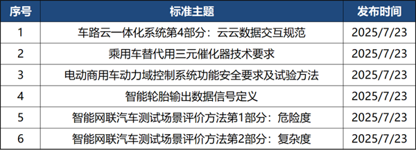 2025年7月共有定稿发布标准6部,2025年7月共有定稿发布标准6部,涉及智能网联等方面。详情如下: