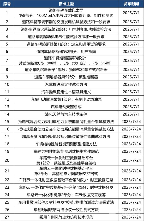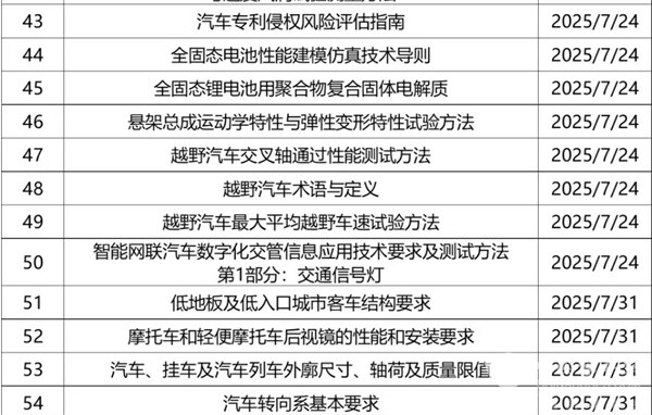 对此,笔者根据慧眼看车等对2025年7月相关汽车行业标准法规汇总进行归纳汇总,并进行了扼要分析,供行业参考!