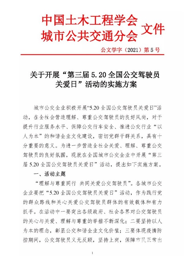 (一)今年的“5.20全国公交驾驶员关爱日”活动根据疫情防控要求,在活动安排时间和人员组织方面要适当给予控制,既要体现活动氛围,也要防止人员大规模聚集。