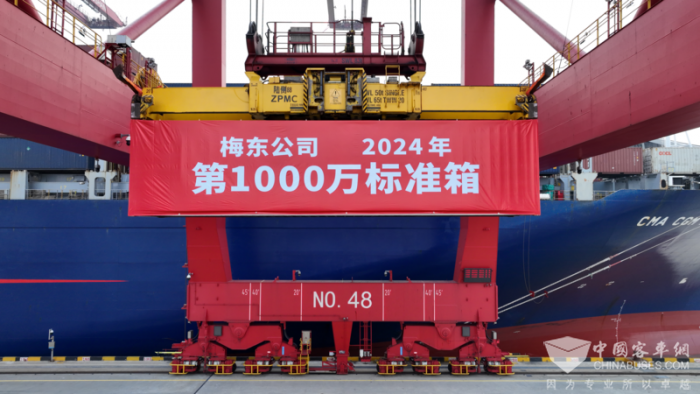 2024年11月22日,浙江宁波舟山港梅山港区今年第1000万个标准箱落上“达飞马可波罗”轮,标志着宁波舟山港继穿山港区集装箱码头后,正式迎来第二个“千万箱级”单体集装箱码头。宁波舟山港也成为全球唯一拥有两个“千万箱级”单体集装箱码头的港口。