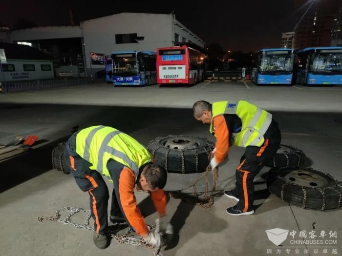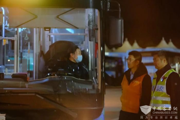 凌晨四点不到,各基层单位所有管理人员到达指定岗位,机务保障人员对所有营运车辆安全一级部位进行重点检查和维护,确保车辆仪表、灯光、制动、车门等设备性能良好。