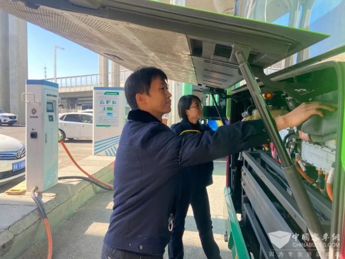 朱文军快步走到车旁,熟练地打开车辆引擎盖开始检查。他俯身凑近,目光紧紧盯着冷却液余量刻度,仔细比对标准值,确保冷却液充足。紧接着,他走进车内依次检查了刷卡机、暖风系统等设备,一系列检查完成,确保车辆的每一处都能正常运行。