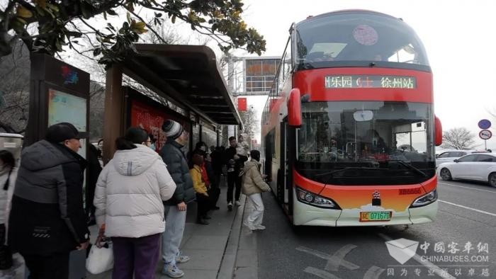近年来,徐州公交先后推出“彭城七里”文脉线、“漫游彭城”双层观光巴士旅游线、“1314”云龙湖环湖专线等22条富有徐州特色的文旅专线;打造“文脉主题车”“赏花主题车”“非遗主题车”等网红打卡车厢;建成运营徐州首家“特种兵旅游集散中心”;实时与徐州文旅消费推广活动如“国潮汉风年 地道徐州味”“汉风徐来 潮游彭城”汉文化旅游节、“徐州寻宝季”等活动形成联动,带动文旅经济要素快速流动,得到市民游客高度认可。