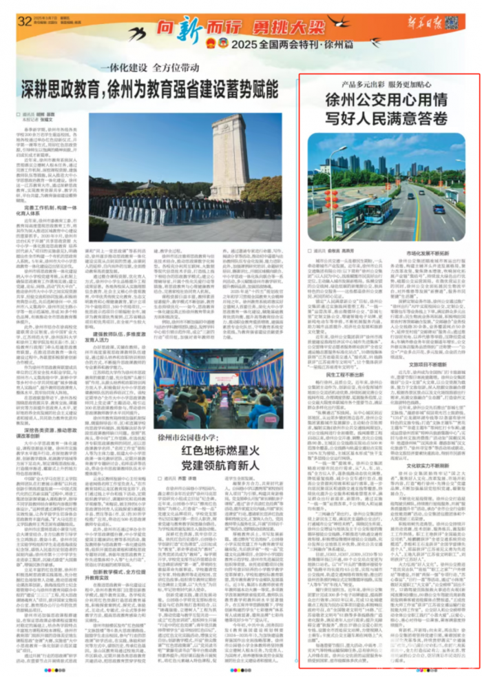 畅行徐州,品质公交。近年来,徐州公交集团主动作为、创新应变,充分发挥城市地面公交灵活机动优势,持续拓展完善公交线网布局、合理调度资源、延展服务范围,让公交最大限度串联城市各个重要节点,满足群众多样化出行需求。