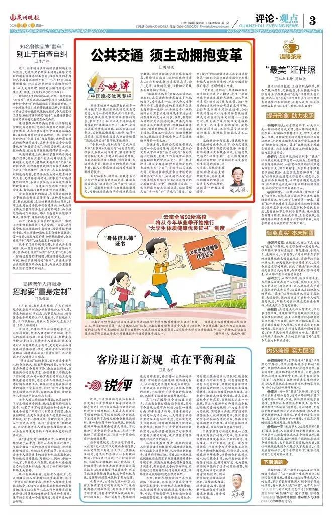 无论社会如何发展,便民服务始终是最好的竞争力。当下,公共交通运营者要发挥自身的比较优势,并善于利用新技术变革服务方式,打通便民交通的“神经末梢”,最大限度满足群众所需所盼,才能取得企业发展与民生获得的双赢。进而言之,当社会发展能促动企业去主动拥抱变革,也能兼顾不同群体的需求、丰富更多人的选择时,这就是一种长足的进步。(来源:泉州晚报、石狮融媒、安溪融媒)