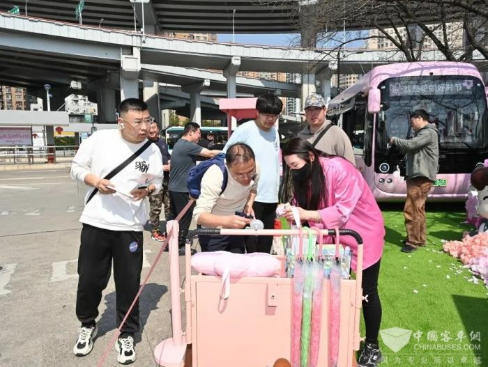 “这个樱花巴士主题的艺术装置太漂亮了,拍照特别出片!”正在拍照打卡的王小姐说道,“我之前还不知道有定制公交服务,今天了解了一下,感觉非常方便,以后出行又多了一种选择。”