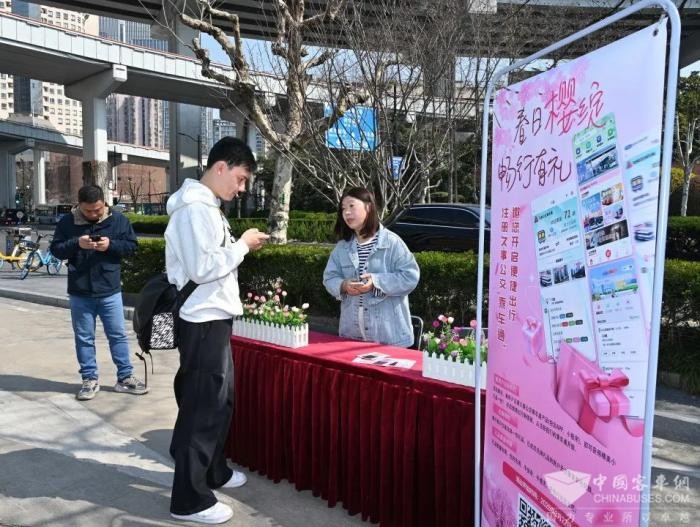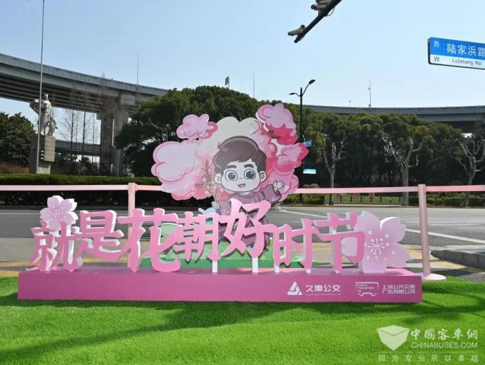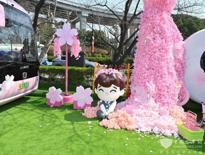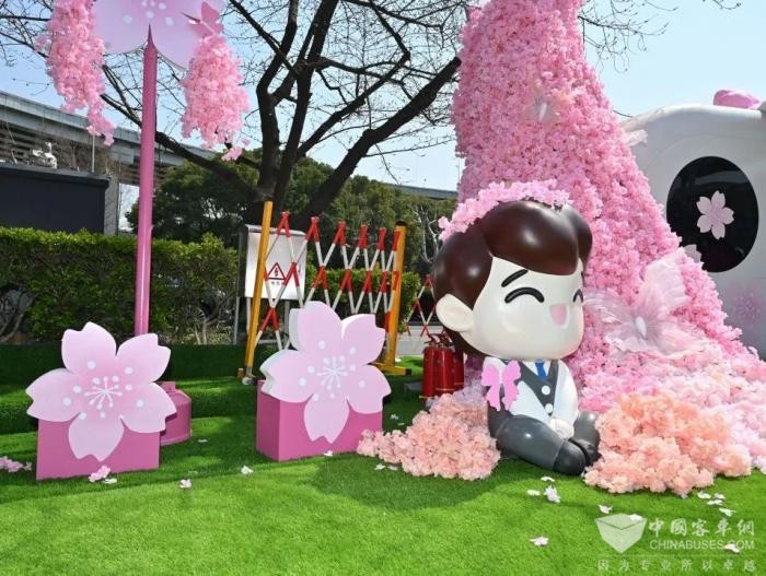为了让更多人了解和使用定制公交服务,久事公交在活动现场设置了一组樱花巴士主题艺术装置,并摆设了公交皮塔ip形象立板、小安君立板和定制公交通易拉宝,形成了一块块闪亮的打卡区域。市民和游客可以在这里拍照留念,感受定制公交的便捷与舒适。