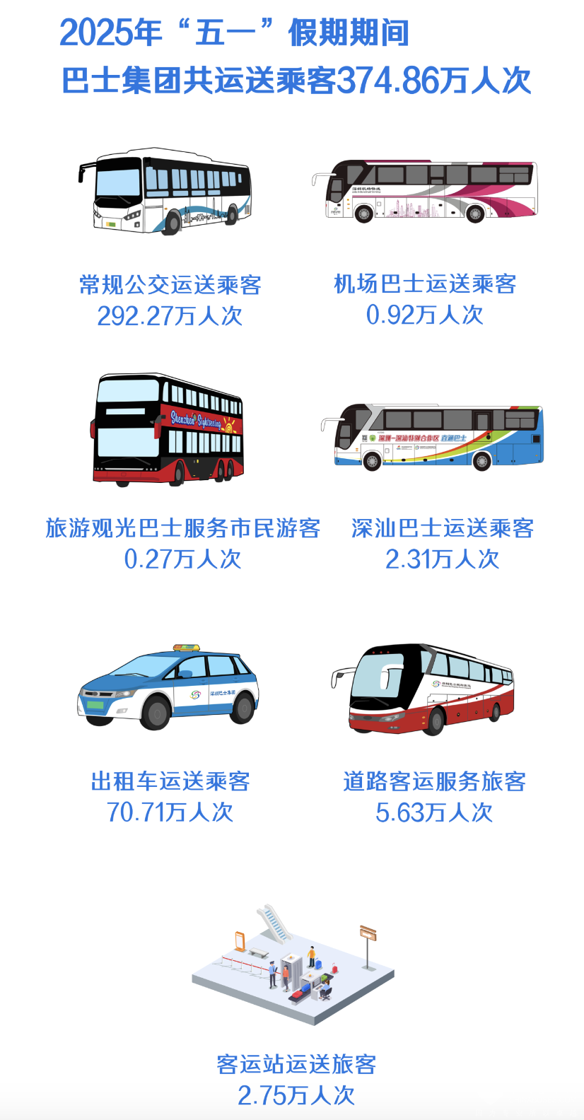 于5月5日-6日凌晨开行北站往南山西丽免费接驳线路。持续在深圳机场运营“零点快线”巴士和机场宝安畅行服务,服务乘客0.97万人次。